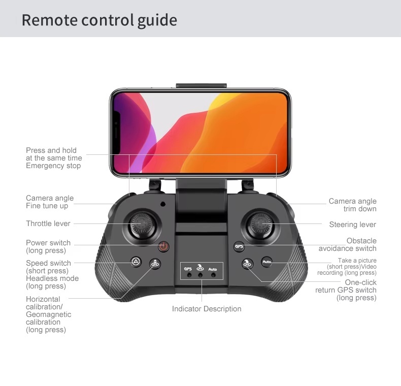 mode, headless mode, - one key take-off, landing,   one key check + emergency stop, air pressure high, one key return,obstacle avoidance, trajectory flight,gravity sensor, gesture recognition, 50X zoom, MV filter, GPS(optional)+optical flow positioning