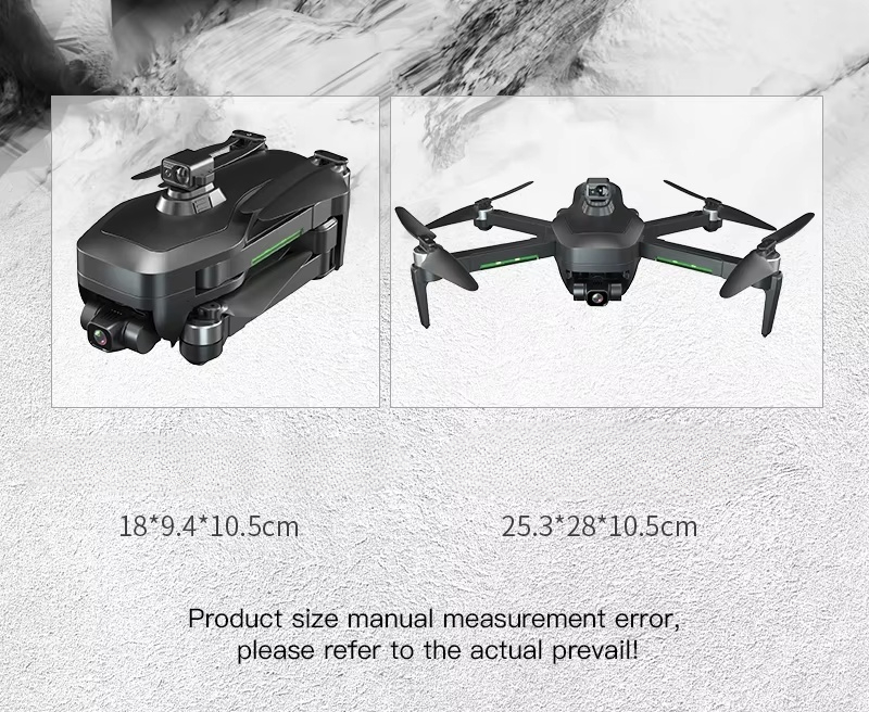 Three-axis mechanical gimbal, folding body, GPS positioning, remote control with screen, one-key takeoff/landing, fixed height hovering, high-definition camera, APP control, ESc camera, 360laser obstacle avoidance, WIFI link, real-time transmission, fixed-point surround, no-head mode, low-point, automatic return after breaking signal