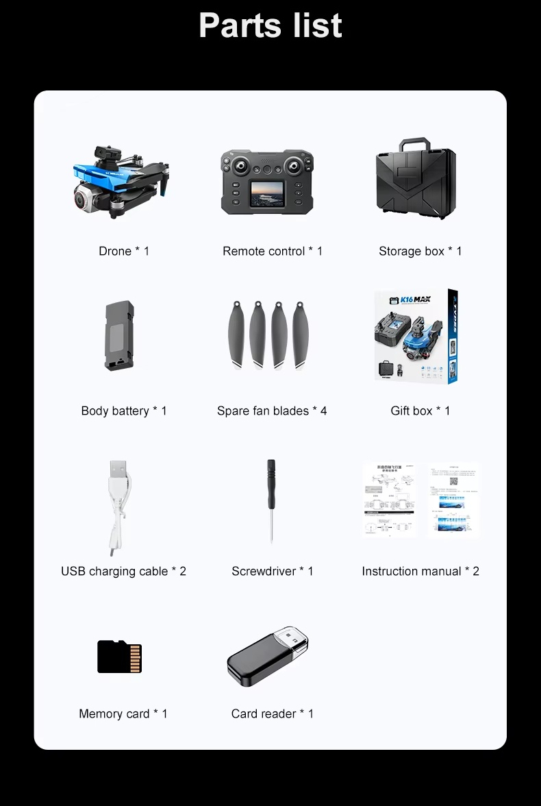 K16 MAX 4K Camera Quadcopter Drone Headless Mode 100m Radio Control Brushless Trajectory Flight Obstacle Avoidance Folding