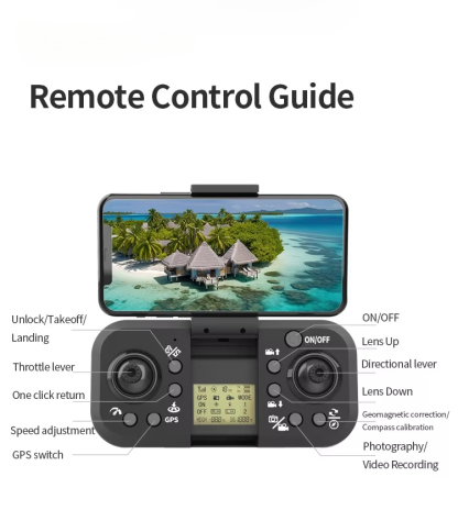 * Use optical stream 4K camera, can take photos, video; Horizontal shot + vertical shot + down shot.