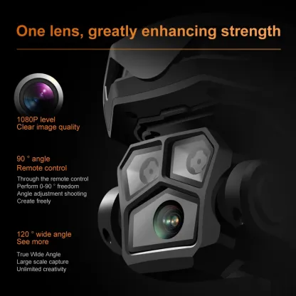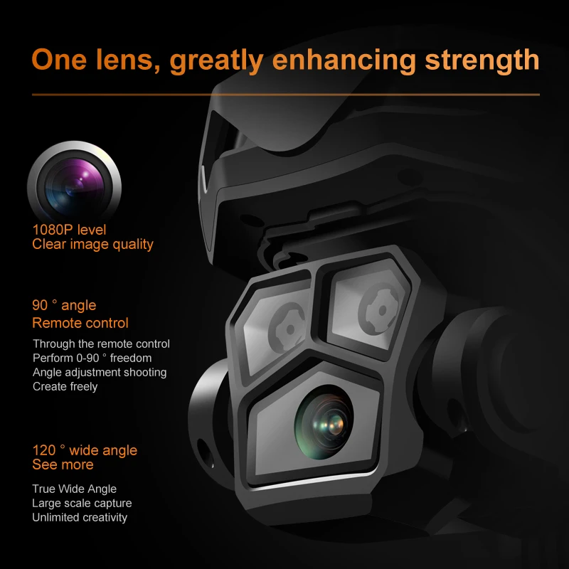 1, the front lens is placed wide-angle 8K HD WIFI, the bottom HD lens with optical flow can change the camera Angle, the steering gear PTZ increase stability design, so that the photos are clearer