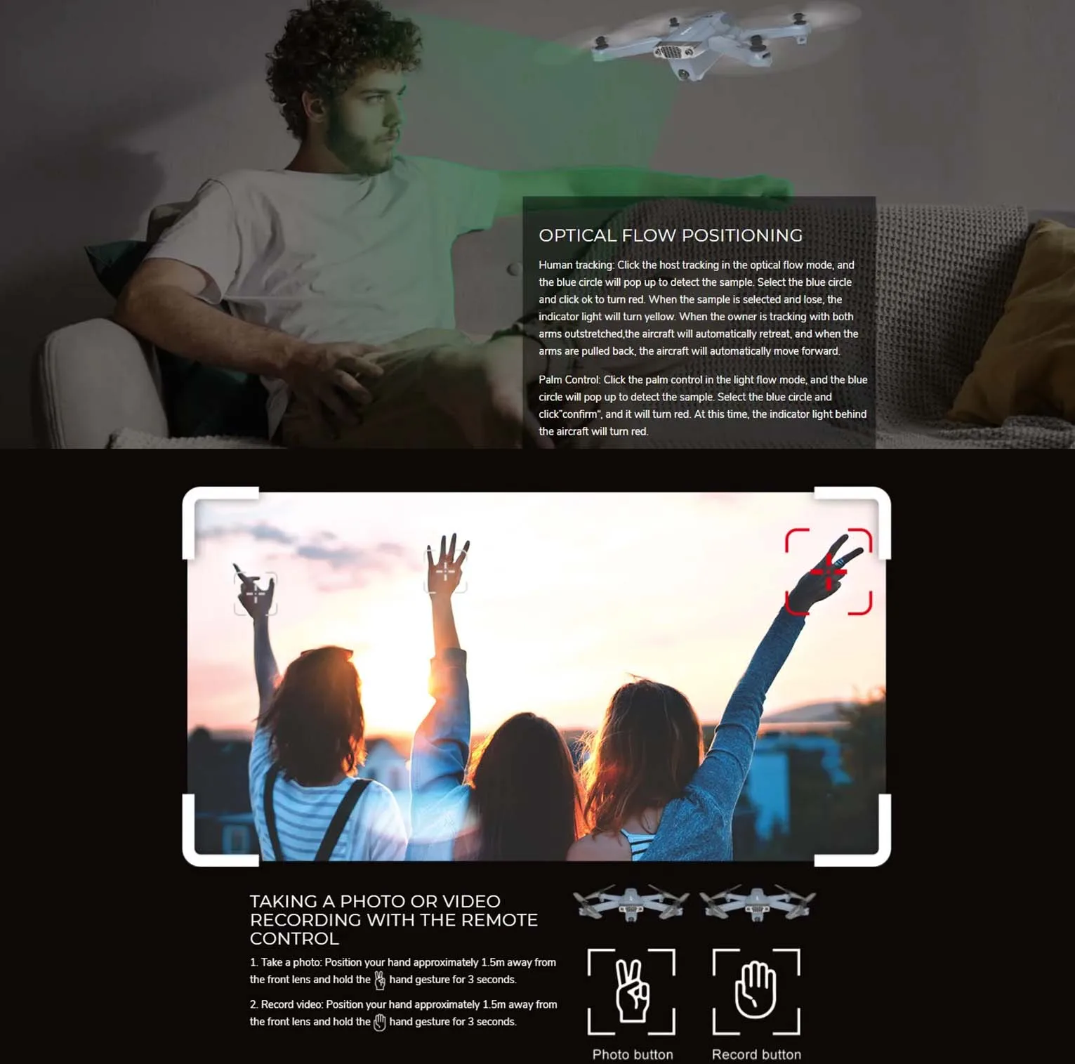 3 The aircraft is indoor and outdoor all can fly,a GPS points and return flights/High pressure on/Geomagnetic headless and special functions;and increase/decrease/forward back /turn left/on the left/one key landing/one key take off and the proportional operation such as fly common functions.